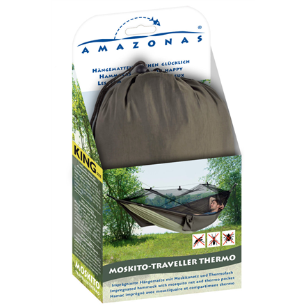 | Other features | Impregnated hammock with mosquito net and thermo pocket The ultra-light hammock MOSKITO-TRAVELLER THERMO comes with a practical mosquito net and built-in pocket for a ground pad (ground pad not included). Both fabric and mosquito net are impregnated with TANATEX insect protection. This impregnation provides lasting protection against flying insects such as mosquitoes and biting midges as well as against crawling insects such as ticks, ants, cockroaches and mites, which will not even sit on the material or the net. Despite this the impregnation has been proven to be completely safe for humans. It is also kind to the skin, odourless, heat-resistant and washable (up to fifty washes). The MOSKITO-TRAVELLER THERMO is ultra-light, the pack dimensions are very small, and both sides can be used: with or without the net. But it is also extremely robust and can hold up to 200 kg.You get in from the side by opening a zip. The net is kept away from the body using the cord enclosed. Generous interior thanks to the patented spreader bars (included). 2 drainage ties included. |