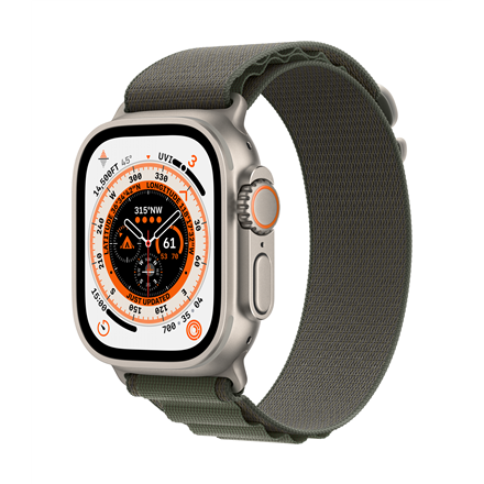 Apple Watch Ultra GPS + Cellular MNHJ3UL/A 49mm, Smart watches, GPS (satellite), Retina LTPO OLED, Touchscreen, Heart rate monitor, Waterproof, Bluetooth, Wi-Fi, Titanium, Green