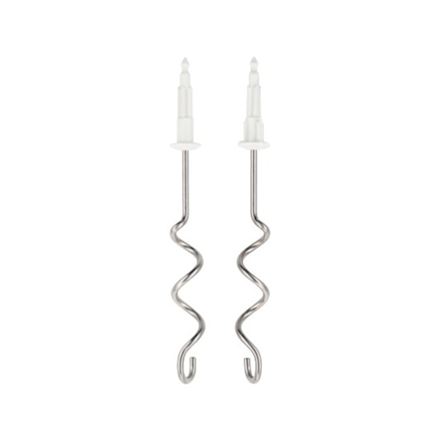 1 x mixing/measuring cup, 1 x plastic mixing whisk, 2x heavy duty stainless steel kneading hooks