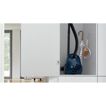 Ergonomic handle; BigCapacity: The large capacity of the dust bag (despite its compact size) allows you to change bags less often and save costs; Automatic cable retraction; Electronic adjustment of suction power with a rotary regulator