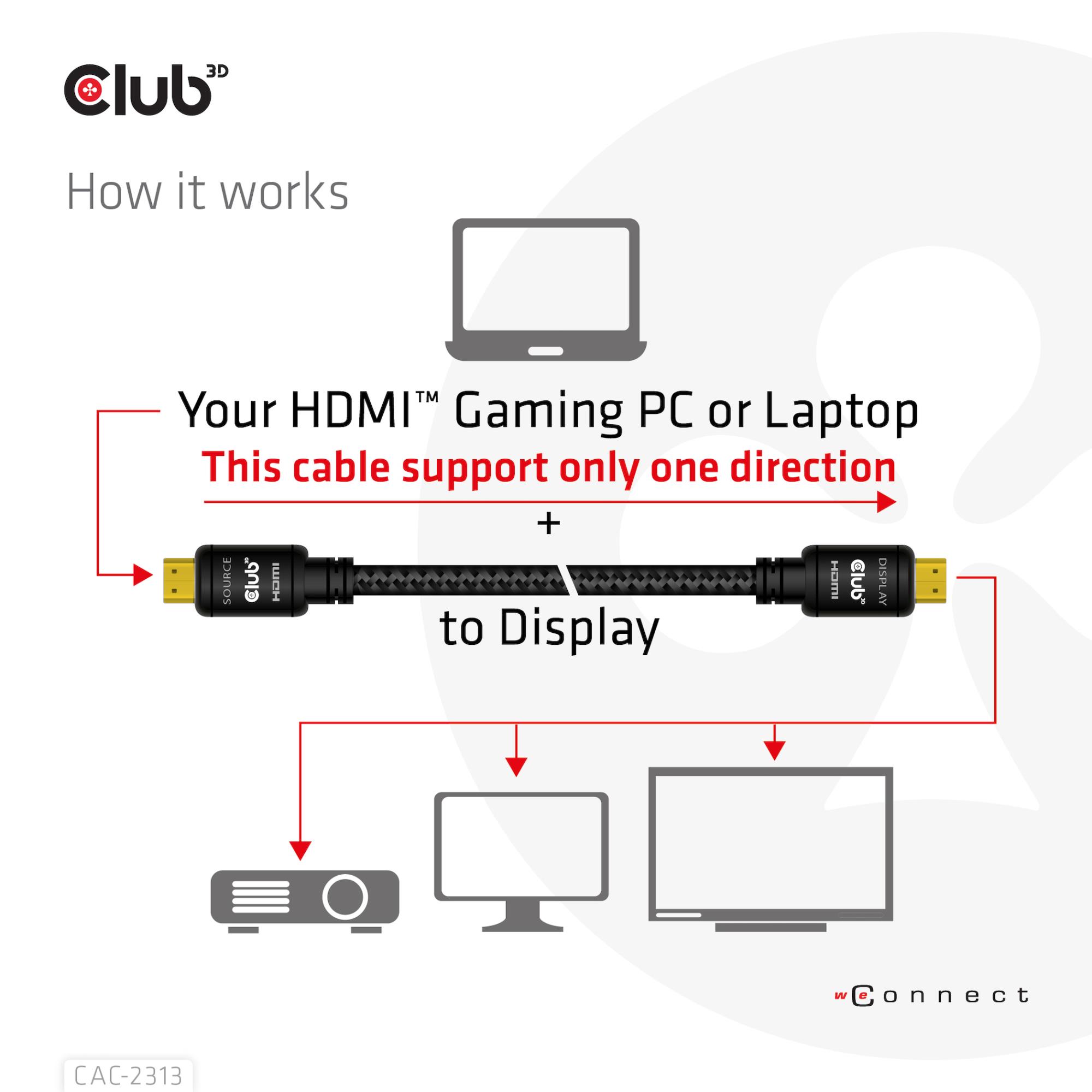 CLUB3D HDMI 2.0 4K60Hz RedMere cable 10m/32.8ft. Cable length: 10 m, Connector 1: HDMI Type A (Standard), Connector 1 gender: Male, Connector 2: HDMI Type A (Standard), Connector 2 gender: Male, Connector contacts plating: Gold, HDMI version: 2.0, 3D, Data transfer rate: 18 Gbit/s, Product colour: Black