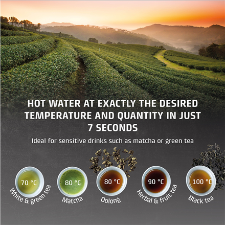 7 pre-set quantities as required: 100/150/200/250/300/350/400 ml and continuous; Perfect for the preparation of tea, instant coffee, instant noodles and baby food; Energy-saving: 50% less than conventional electric kettles; 13 different temperature settings: 40-100 °C (in 5 °C intervals) and without heating; Direct selection button for preparation of baby food (37 °C)