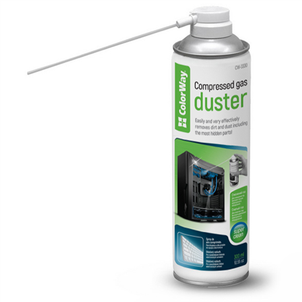 | Other features | Compressed gas duster TM ColorWay for cleaning keyboards, printers, computers, laptops, phones and other office and household appliances by blowing dust in tight spaces and small items. Cleaning is carried out with a short press on button directed air stream, with a maximum can`s tilt without exceeding more than 30 degrees. |