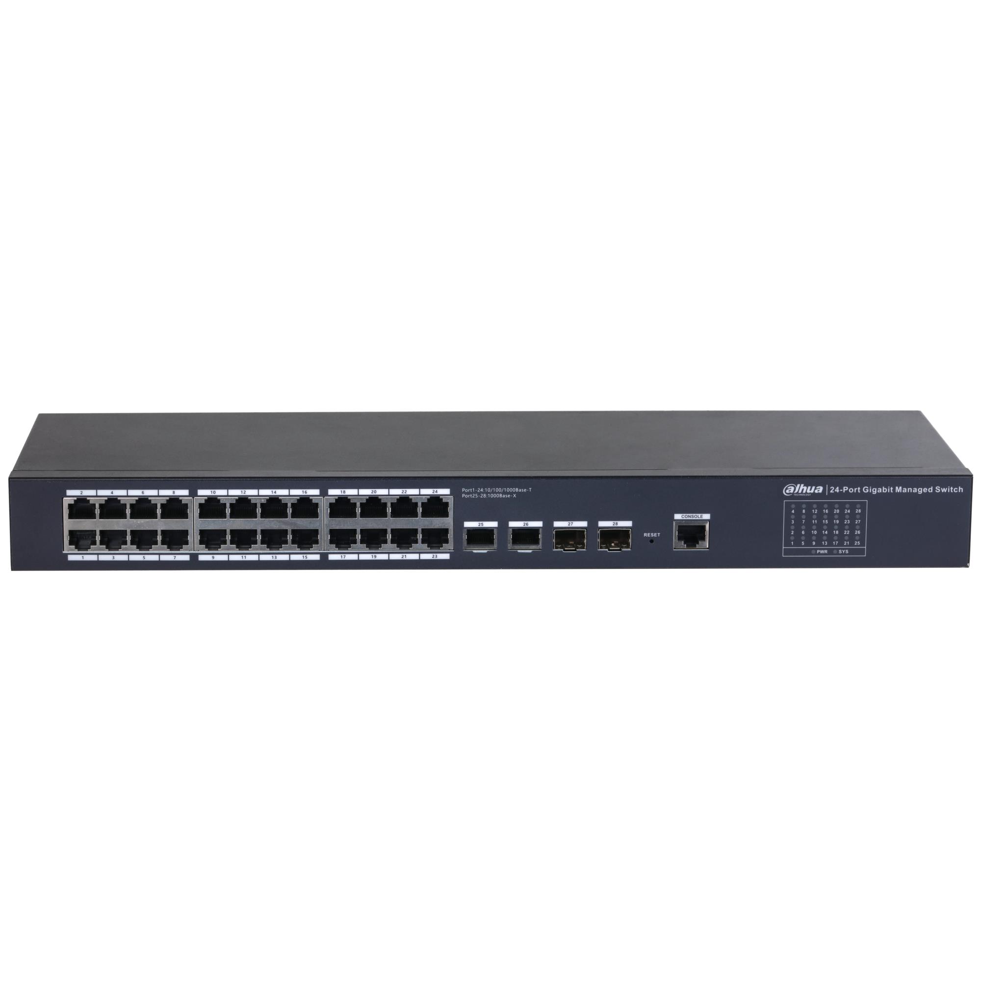 Summary Dahua Technology SG4028. Switch type: Managed, Switch layer: L2. Basic switching RJ-45 Ethernet ports type: Gigabit Ethernet (10/100/1000), Basic switching RJ-45 Ethernet ports quantity: 26, Console port: RJ-45. Full duplex. MAC address table: 8000 entries, Switching capacity: 56 Gbit/s. Networking standards: IEEE 802.1x, IEEE 802.3x. DC input voltage: 12 V. Rack mounting