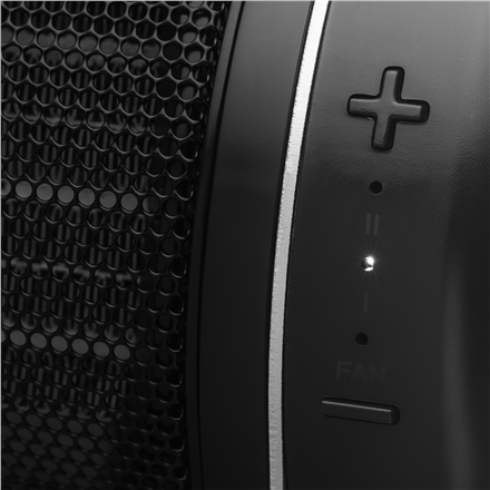 Noise level – 45dBa. Fan only mode. Minimalistic controls with LED indicators. Up to 50⁰ angle adjustment. Overheat protection. Tip-over safety shut off. Powerful double DC fan. Stylish aluminum base. Effective area – 40m². Ceramic heating element. Fire resistance – Class V0.