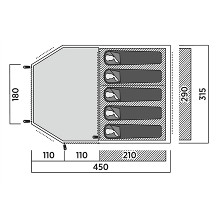 | Flysheet | WeatherGuard 3000, 190T polyester PU coated, PFC free water repellency, fire retardant |