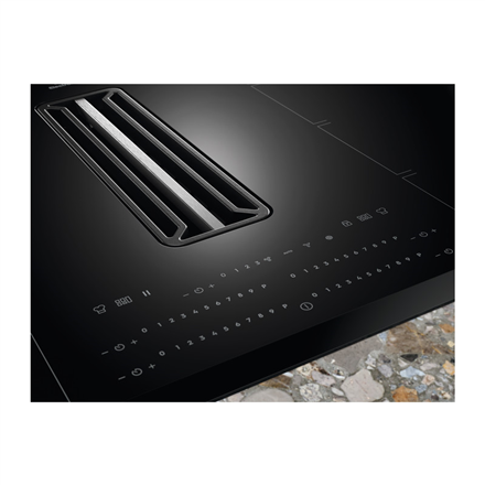 Double FlexiBridge has two 4-segment hotplates and connects up to 4 hotplates for maximum flexibility; Now you can cook with pots and pans of different sizes - each side can be adjusted according to your needs; After cooking, the Breeze function refreshes the air in the kitchen without making a lot of noise; The My Electrolux Kitchen app notifies you when maintenance is due; Energy efficiency class A+