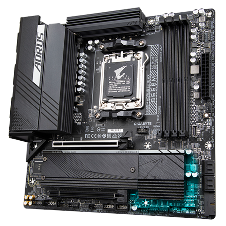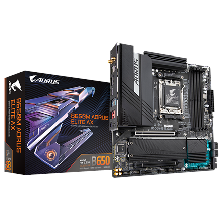 Gigabyte B650M AORUS ELITE AX 1.0 M/B Processor family AMD, Processor socket AM5, DDR5 DIMM, Memory slots 4, Supported hard disk drive interfaces SATA, M.2, Number of SATA connectors 4, Chipset AMD B650, Micro ATX