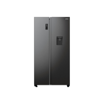 Gorenje Refrigerator | NRR9185EABXLWD | Energy efficiency class E | Free standing | Side by side | Height 178.6 cm | No Frost system | Fridge net capacity 355 L | Freezer net capacity 192 L | Display | 38 dB | Black