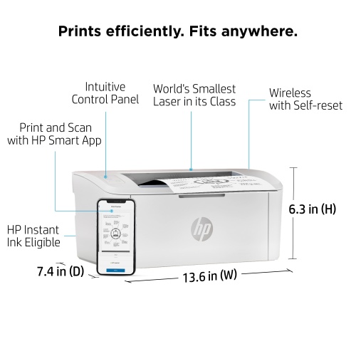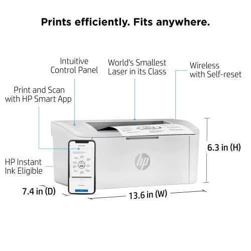| Box contents | HP LaserJet M110w Printer; Power cord; Toner Cartridge (~300 pages); Setup Poster; Reference Guide; Warranty Guide; Flyer |