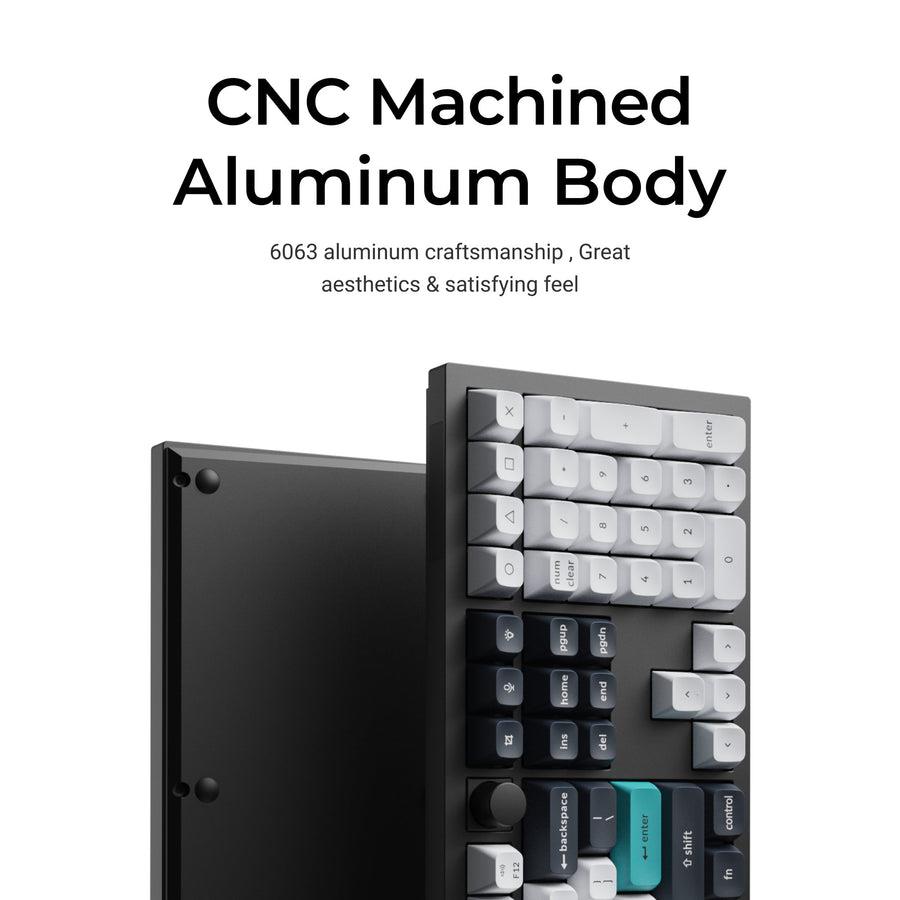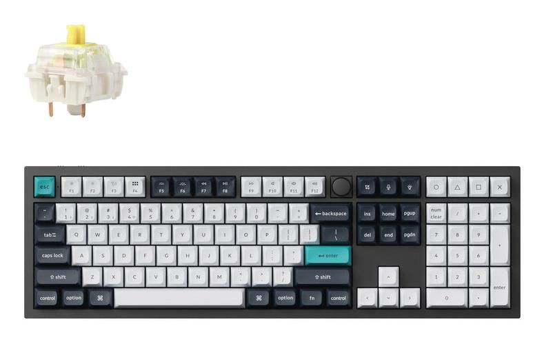 Keychron Q6 Max. Keyboard form factor: Full-size (100%). Keyboard style: Straight. Connectivity technology: Wired & Wireless, Device interface: USB + RF Wireless + Bluetooth, Keyboard key switch: Mechanical, Keyboard layout: QWERTY, Keyboard number of keys: 108. Backlight type: RGB LED. Recommended usage: Universal. Product colour: Black