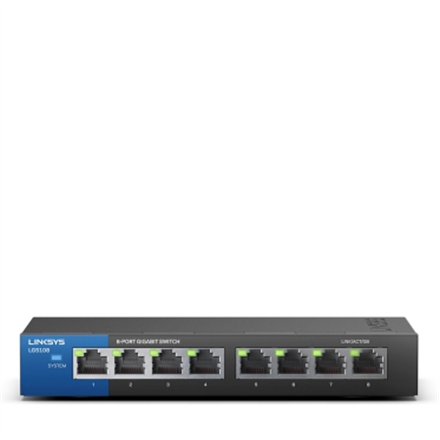 Linksys Switch LGS108 Unmanaged, Desktop, 1 Gbps (RJ-45) ports quantity 8, Power supply type External