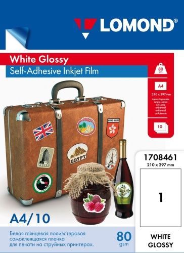 Lomond PET Film for inkjet printers, White Glossy, Self-Adhesive A4, 10 sheets