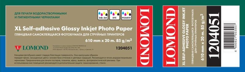 Lomond XL Photo Paper Glossy Self Adhesive 85 g/m2 610mm*20m (50,8mm)