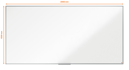 Steel magnetic whiteboard with an anodised aluminum trim. Fixed by a through corner wall mounting and supplied with a whiteboard pen tray. The painted steel magnetic whiteboard surface delivers an increase level of erasability for frequent use. Size: 2400x1200mm.