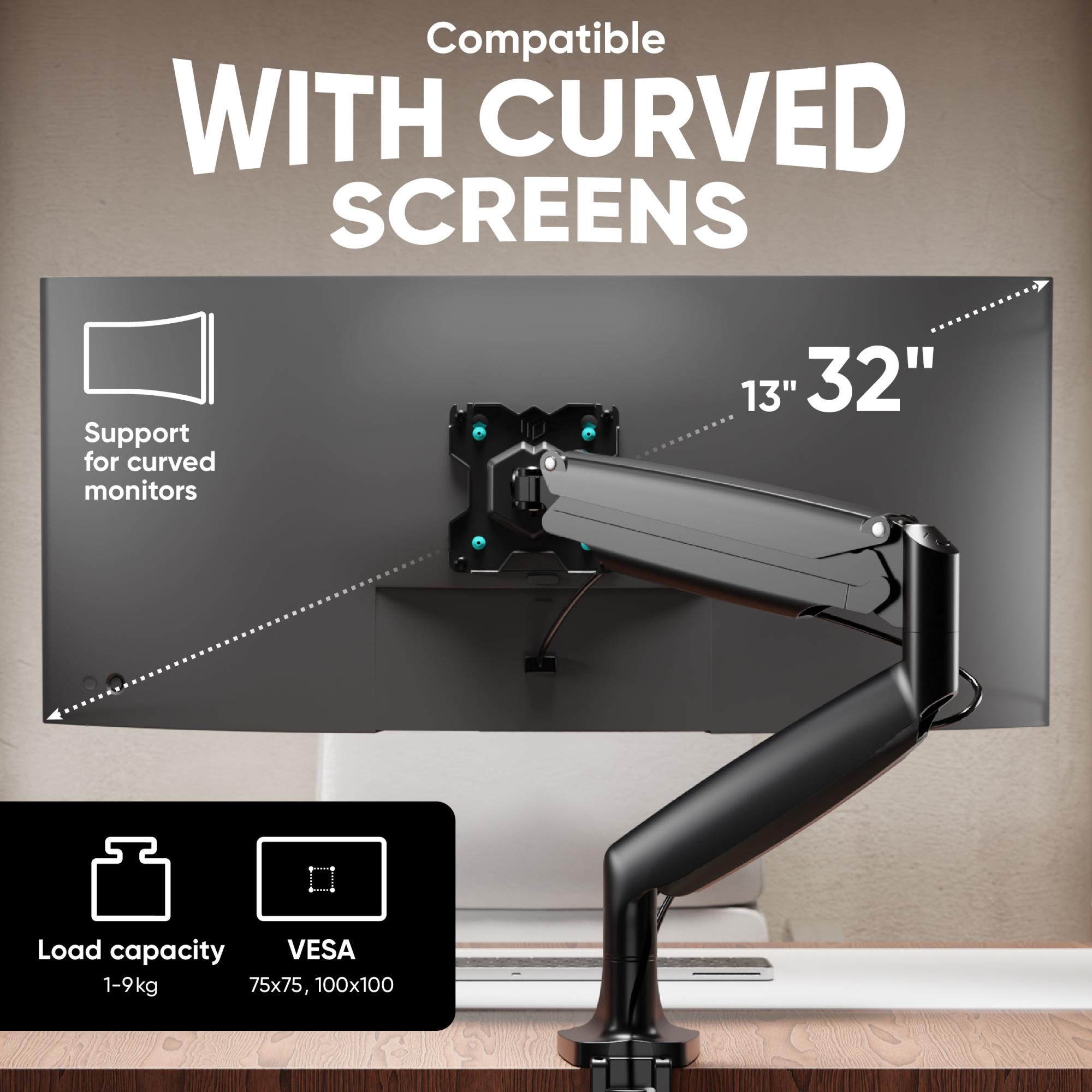 ONKRON G100-B. Mounting: Clamp/Grommet, Maximum weight capacity: 9 kg, Minimum screen size: 33 cm (13"), Maximum screen size: 81.3 cm (32"), Minimum VESA mount: 75 x 75 mm, Maximum VESA mount: 100 x 100 mm. Height adjustment, Tilt angle range: -90 - 45°. Product colour: Black