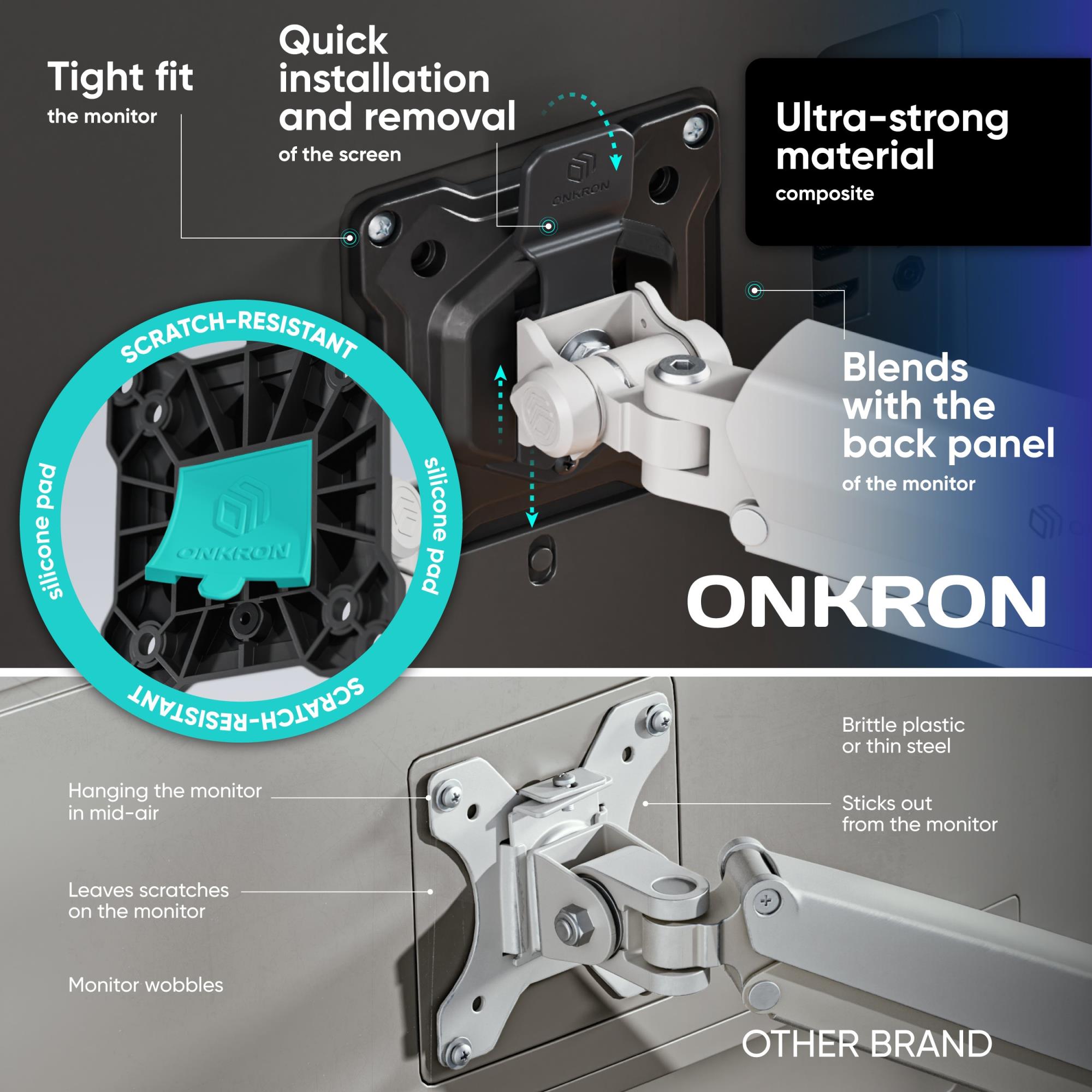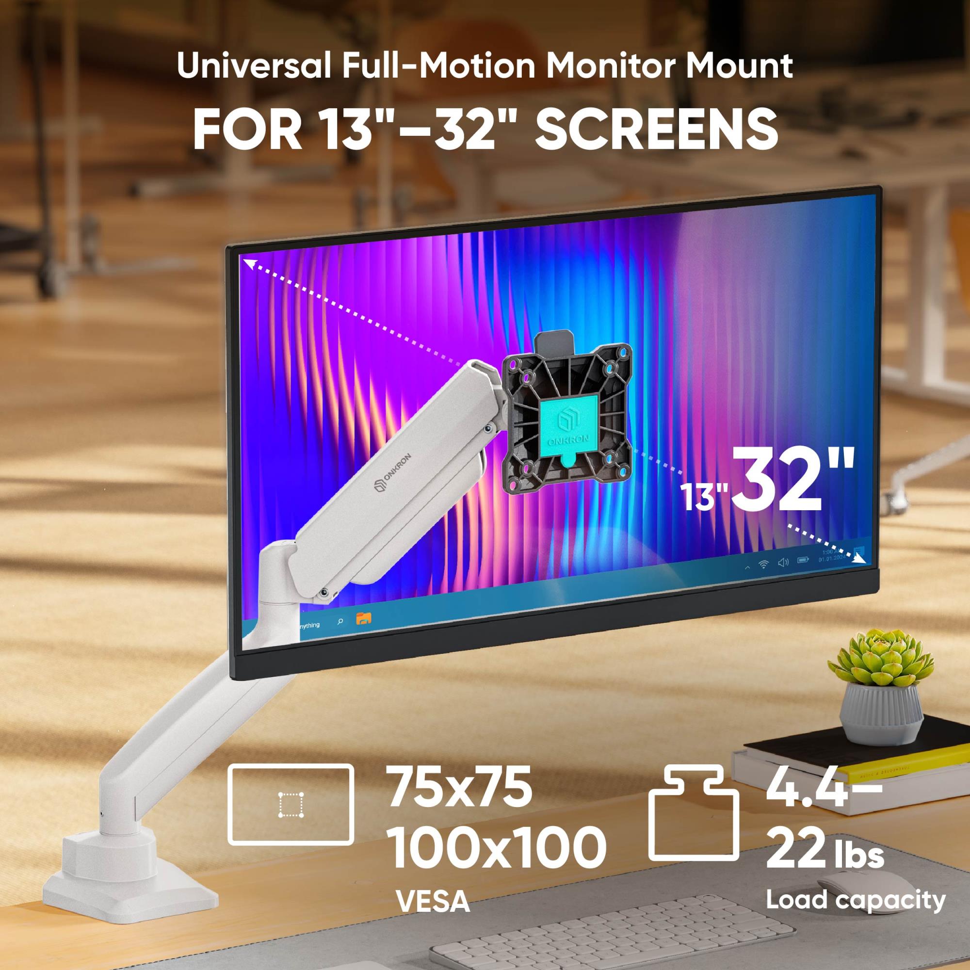 ONKRON G80-BW. Mounting: Clamp, Maximum weight capacity: 22.1 kg, Minimum screen size: 33 cm (13"), Maximum screen size: 81.3 cm (32"), Minimum VESA mount: 75 x 75 mm, Maximum VESA mount: 100 x 100 mm. Height adjustment, Tilt angle range: -45 - 90°. Product colour: White, Black