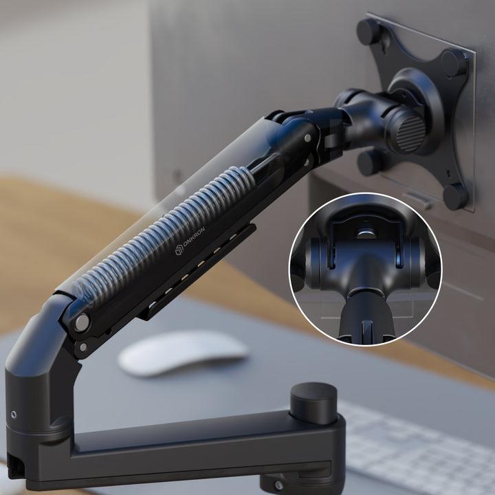 ONKRON . Mounting: Clamp/Grommet, Maximum weight capacity: 11 kg, Minimum screen size: 43.2 cm (17"), Maximum screen size: 96.5 cm (38"), Minimum VESA mount: 75 x 75 mm, Maximum VESA mount: 100 x 100 mm. Height adjustment, Swivel angle range: -90 - 90°, Tilt angle range: -25 - 90°. Product colour: Black