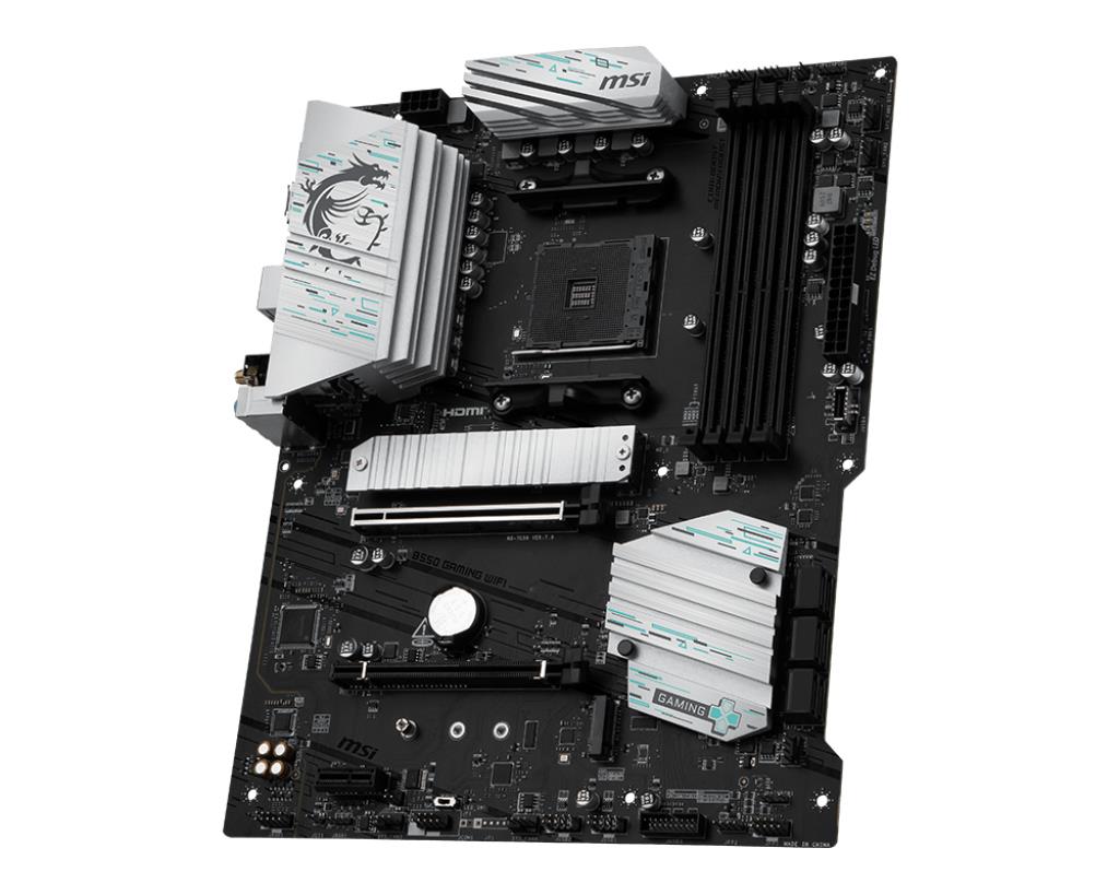MSI B550 GAMING WIFI. Processor manufacturer: AMD, Processor socket: Socket AM4, Compatible processor series: AMD Ryzen 3000 Series. Supported memory types: DDR4-SDRAM, Maximum internal memory: 128 GB, Memory slots type: DIMM. Supported storage drive interfaces: SATA III, Supported storage drive types: HDD & SSD. Maximum resolution: 4096 x 2160 pixels. Ethernet interface type: Gigabit Ethernet, LAN controller: Realtek 8111H, Top Wi-Fi standard: Wi-Fi 5 (802.11ac)
