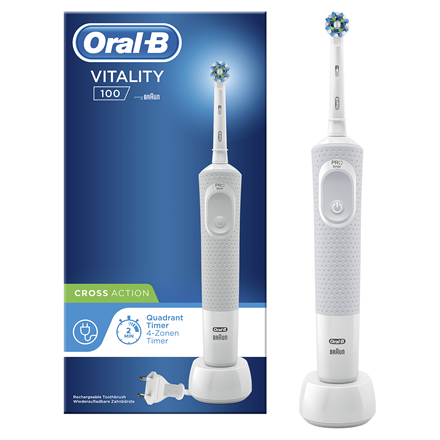 Oral-B Electric Toothbrush Vitality 100 CrossAction Rechargeable, For adults, Number of brush heads included 1, White, Number of teeth brushing modes 1