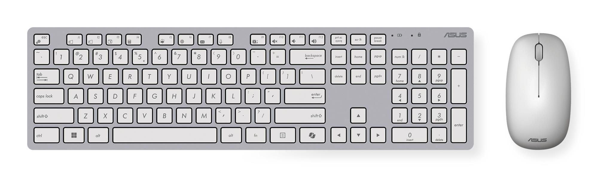 ASUS W5000. Keyboard form factor: Full-size (100%). Keyboard style: Straight. Connectivity technology: Wireless, Device interface: RF Wireless, Recommended usage: Office. Product colour: White. Mouse included