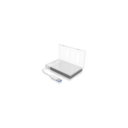 The ICY BOX IB-AC603a-U3 is the perfect helper when a 2.5" SATA hard drive must be quickly connected. It does not even matter whether you want to connect it to a computer, laptop, media player or smart TV: The wide spread universal USB port allows you to connect to almost any device. And all that is done via a fast USB 3.0 port with transfer rates of up to 5 GBit / second. The adapter can also be used without the protective cover... and vise-versa. With this adapter, the hard disk can be connected directly to a computer, media players etc. The protective enclosure can also be used for longer storage periods without using the adapter itself.