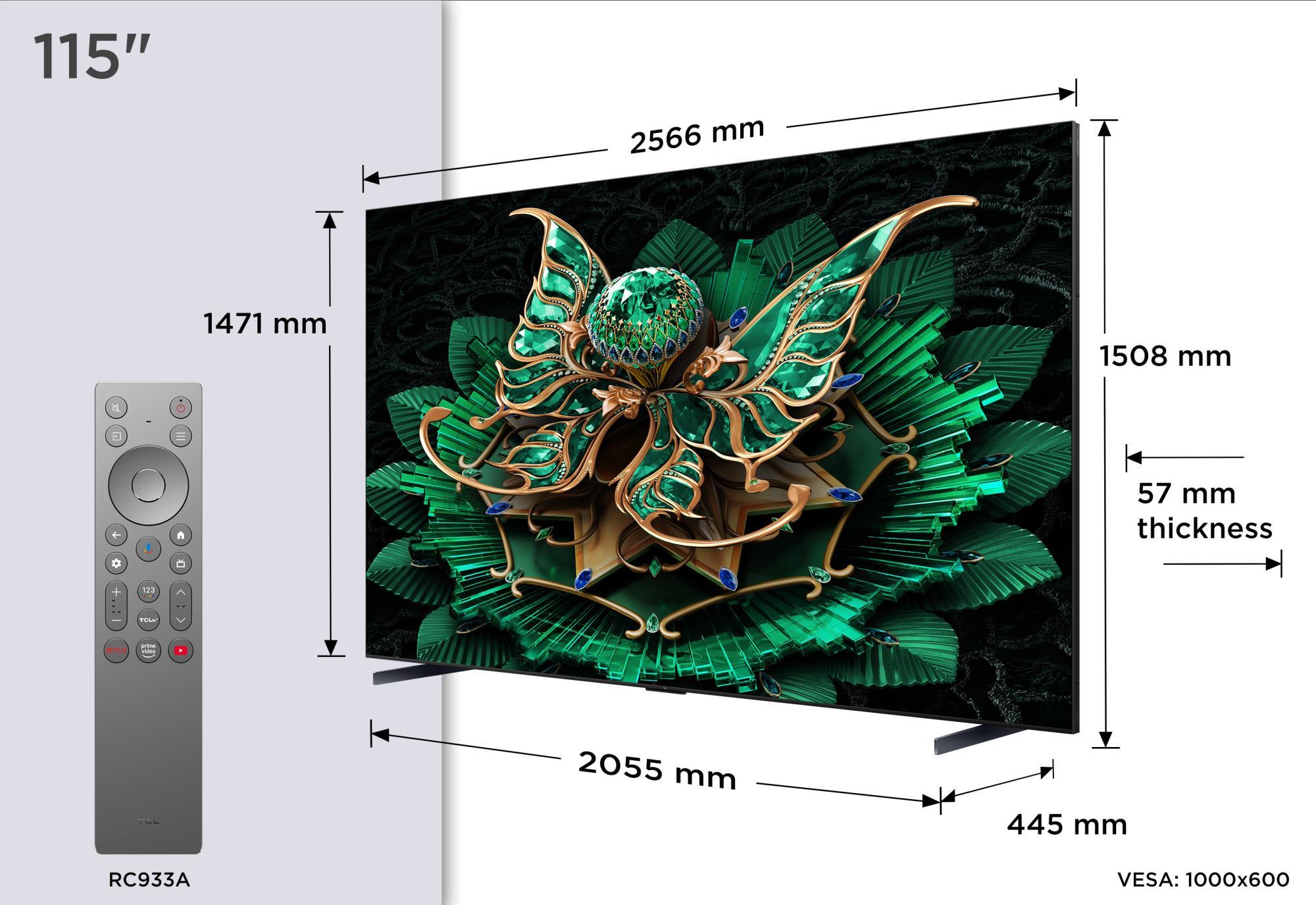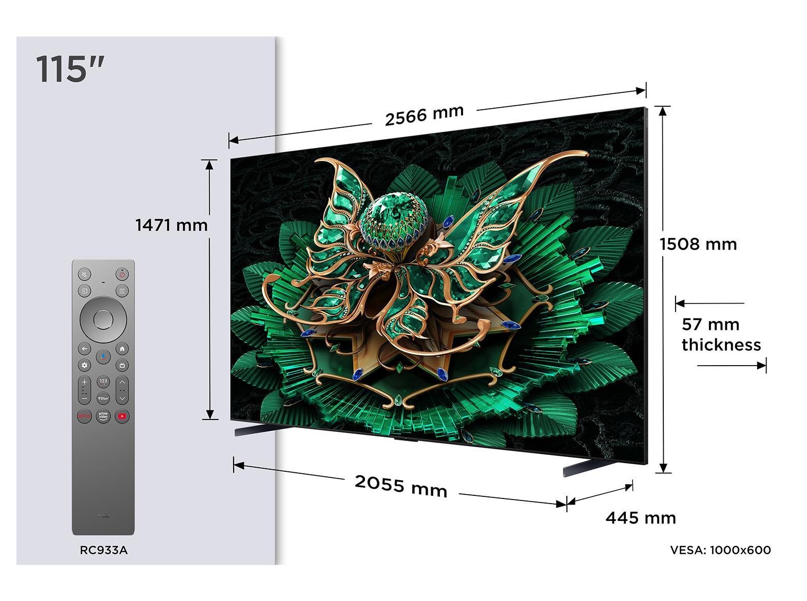 TV Set|TCL|115 "|4K Ultra HD|3840 x 2160 pixels|Flat|16:9|QD-Mini LED|115C7K