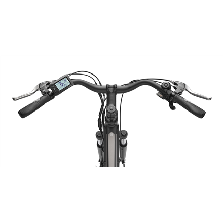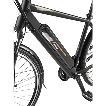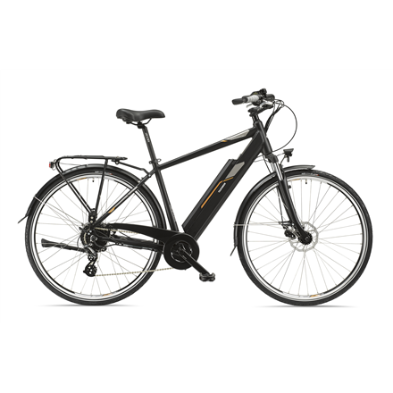 | Other features | Alu Trekking Ultralight Hydroformed (men); MD-682 aluminum suspension fork; Shimano Acera 8 speed derailleur gears; Plastic chain guard; Trekking tires 38-622 with reflex ring; Aluminum Trekking Ergo handlebar; Aluminum Ahead handlebar stem; Comfort Trekking saddle; Aluminum patent seatpost; V-strut luggage rack, Trekkinglight; Aluminum rear sidestand; Sport LED headlight with reflector (20 Lux), LED luggage carrier rear light; Rear wheel motor Telefunken 36 V 250 watts; LCD display; Partially integrated battery, Li-Ion 36 Volt / 13 Ah / 468 Wh |