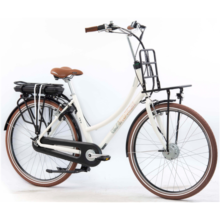 Aluminum frame with battery mount on the luggage rack and step-through. High-performance battery (Li-Ion) with 36 volts / 13 Ah / 468 Wh. Shimano 7-speed coaster brake hub