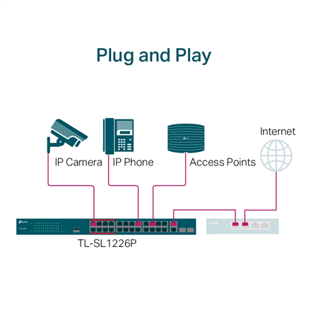 TP-LINK 24-Port Gigabit Switch TL-SL1226P 10/100/1000 Mbps (RJ-45), Unmanaged, Rackmountable, Ethernet LAN (RJ-45) ports 24