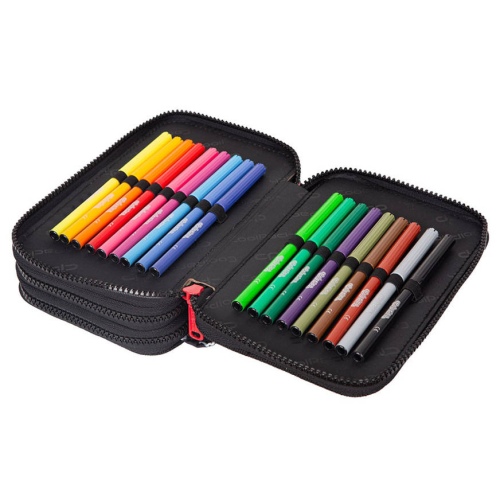 Triple decker pencil case with equipment